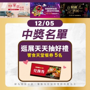 2025/12/08 12/5-8桃園旅遊美食展【逛展天天抽】DAY4中獎名單 DAY4中獎名單出爐 饗食天堂-中獎幸運兒 卓庭暄 0919xxx213 林有章 0911xxx318 呂學鑫 0967xxx03...